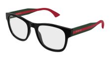 Gucci GG0004ONN Eyeglasses, 001 - BLACK with GREEN temples and TRANSPARENT lenses