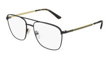 Gucci GG0833O Eyeglasses, 001 - BLACK with GOLD temples and TRANSPARENT lenses