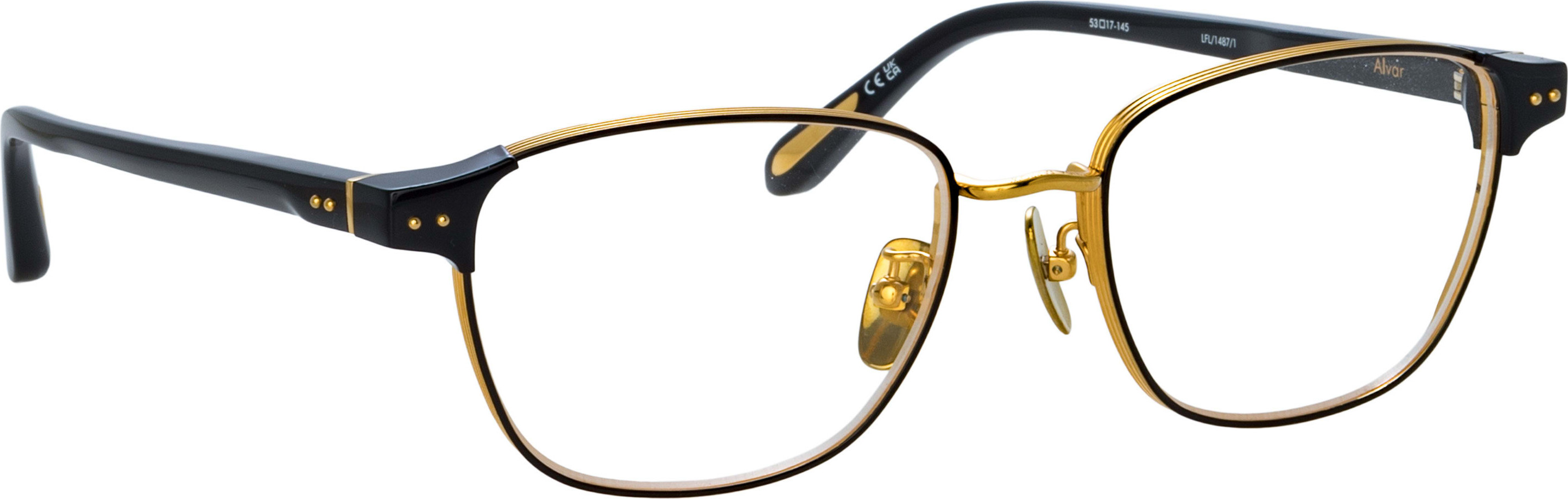 Linda Farrow LFL1487 ALVAR Eyeglasses, (001) BLACK/ BLACK/ YELLOW GOLD