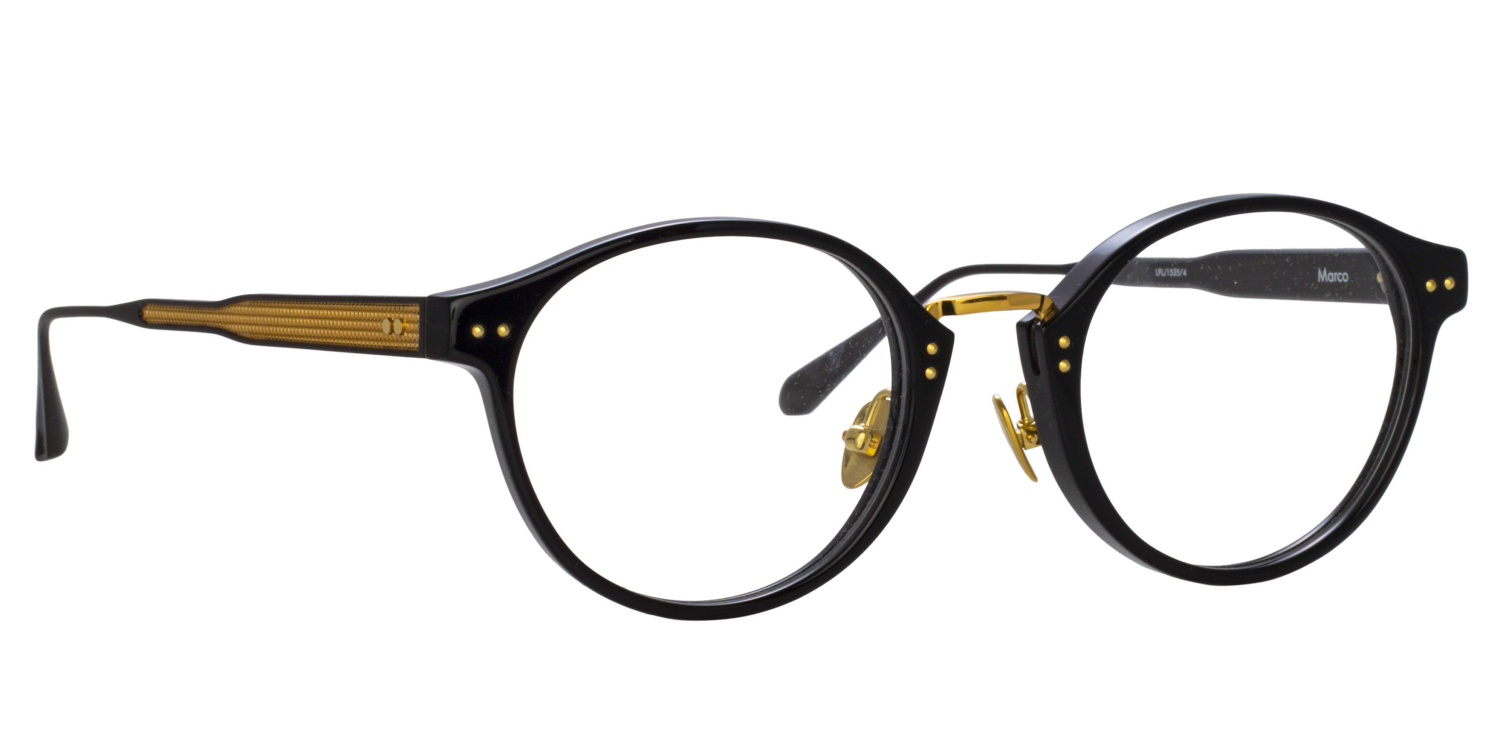 Linda Farrow LFL1535 MARCO Eyeglasses, (004) BLCK/ YELLOW GOLD/ MATT NICKEL