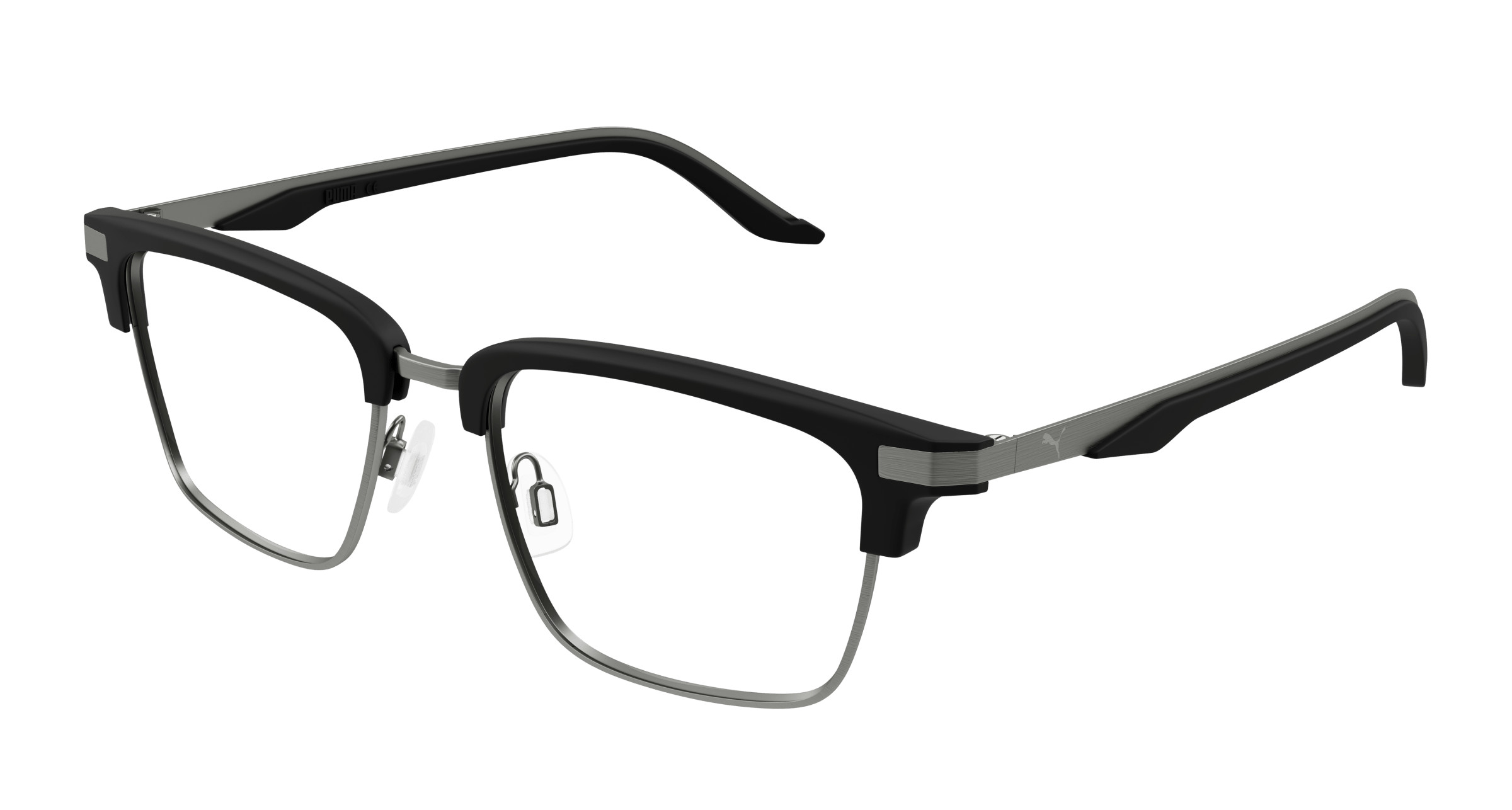 Puma PU0411O Eyeglasses, 002 - BLACK with GUNMETAL temples and TRANSPARENT lenses