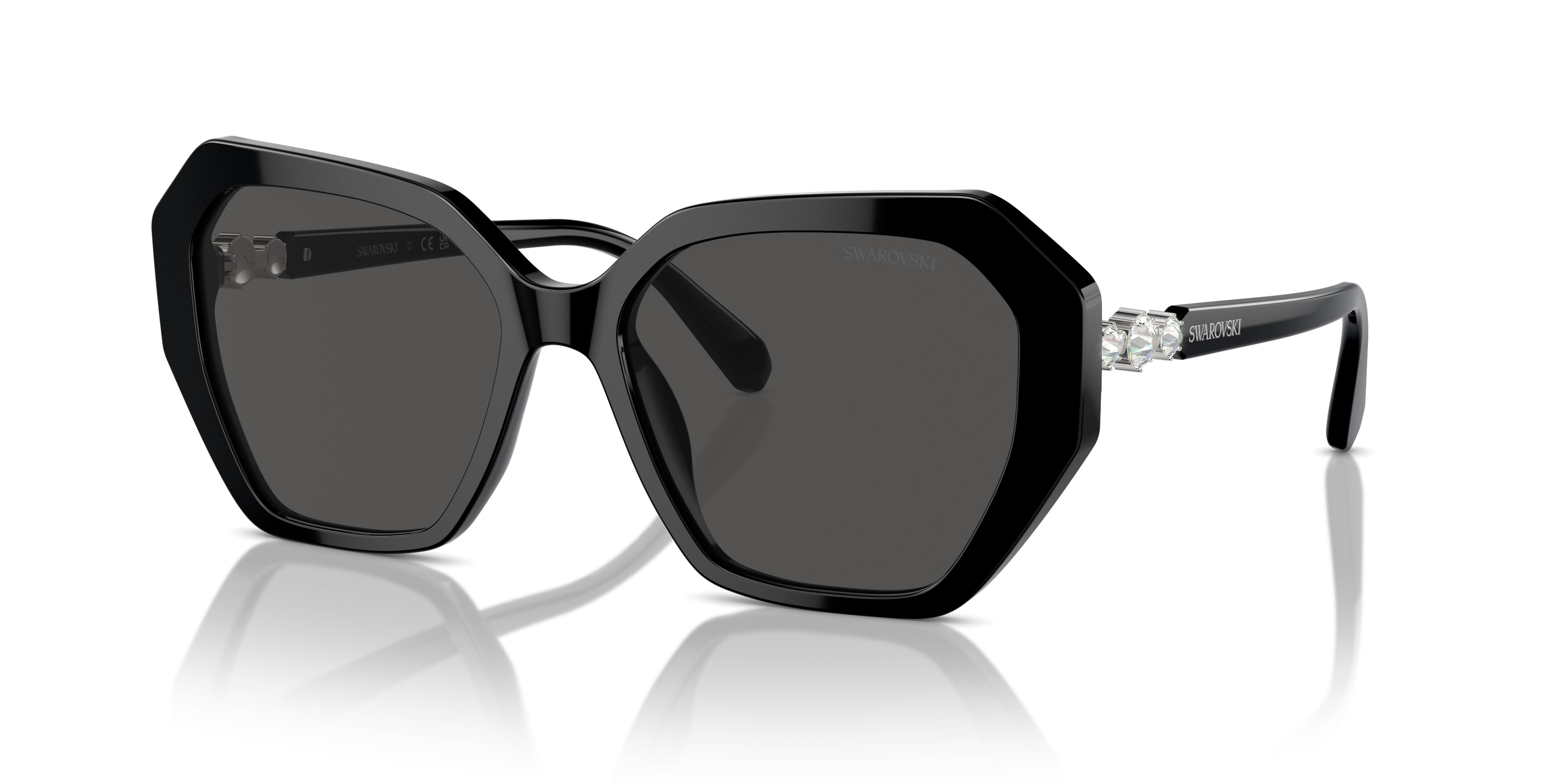 Swarovski SK6017F Sunglasses, 100187 BLACK DARK GREY (BLACK)
